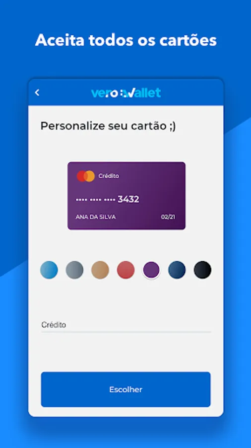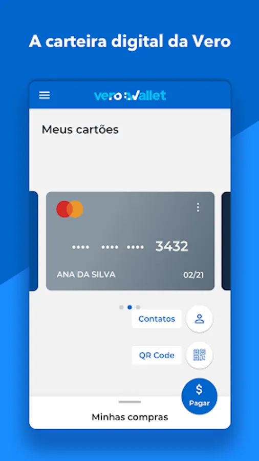 You can register your cards and pay Vero accredited using your smartphone's camera or by selecting one of them in the app, as long as they are saved in your contact list.