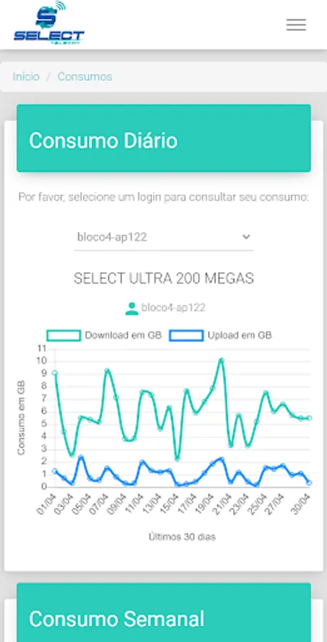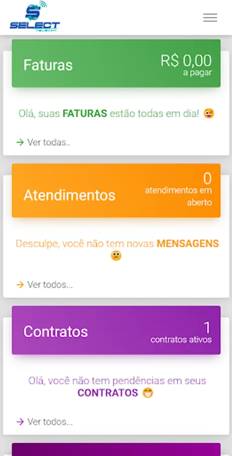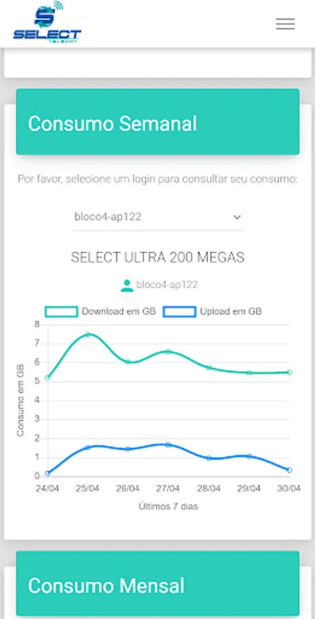 Hello, welcome to SELECT TELECOM Subscriber Central. Here, you can check your monthly payments, check your consumption and check the speed of your plan and much more. All this at a click!