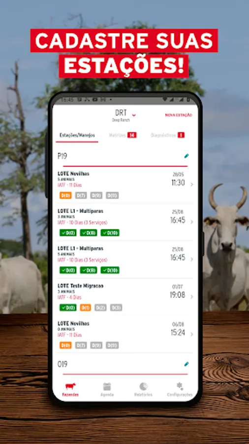 With DataBeef you will be able to access, in a simple and intuitive way, your lists of reproductive stations, viewing batches and matrices with their respective stages of development; create and edit stations; change replay protocol instance data; record data from each diagnostic step (post-insemination); and much more.