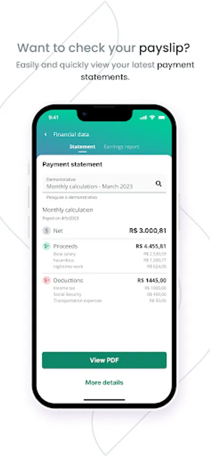 Financial Data: Have free access to your pay stub with your labor financial information.