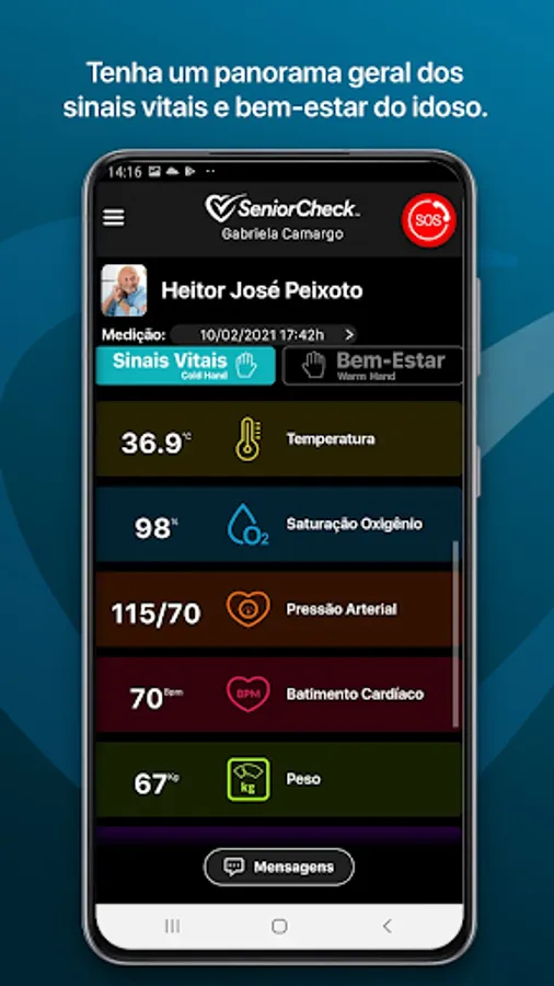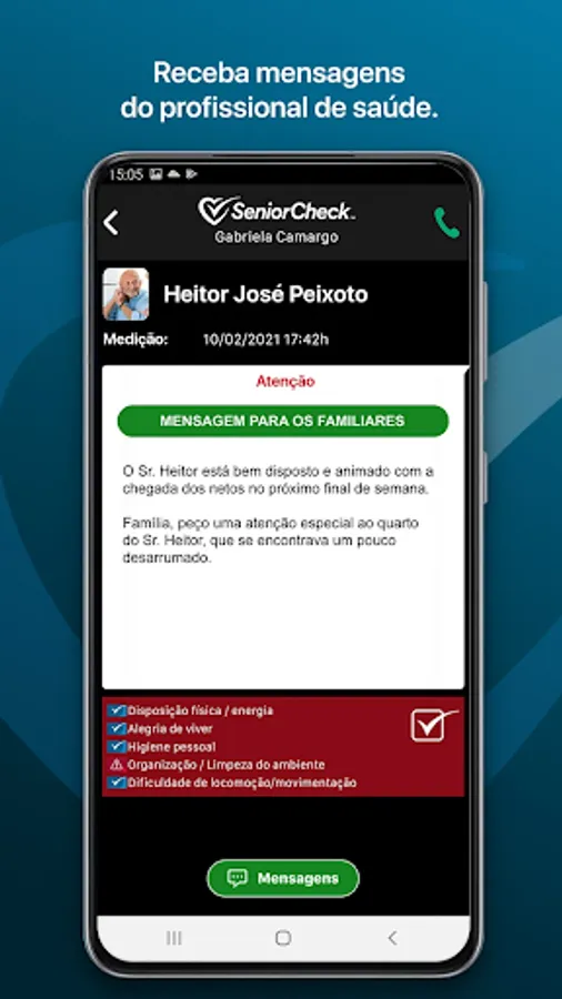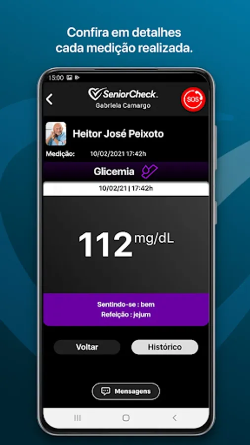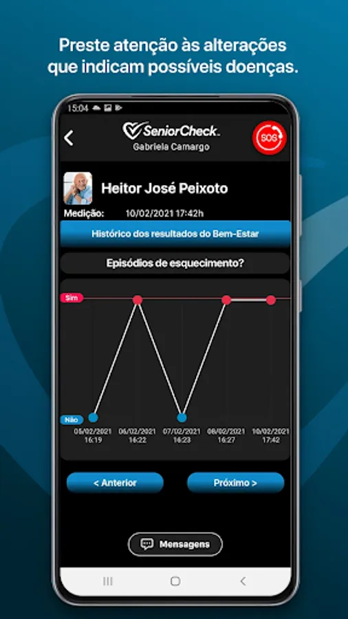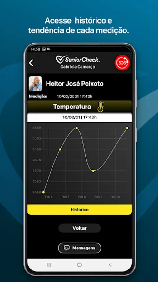 All the health information of the elderly, such as oxygen saturation, blood pressure, blood glucose, body temperature, weight, heart rate, lean mass and much more, are available in an unprecedented and immediate way with history and trends, from the first measurement.