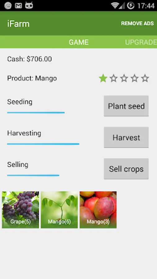 Click as fast as you can to accelerate seeding, harvesting and selling your products. Tapping faster you will have outstanding profits and it will allow you to achieve great position on leaderboard.