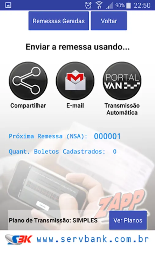 With only 3 steps, you can register your tickets, using the ticket bar code reading, through the cell phone camera, and sending the REMESSA file to the bank / responsible for collection in the company, in a simple and automated way.