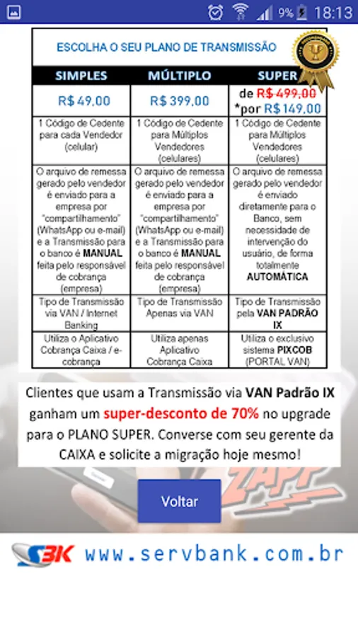 -The delivery file can be MANUAL (made by the person in charge of the company's collection) using the SIMPLE / MULTIPLE or fully automated plans, being sent by the seller / cellular directly to the Bank.