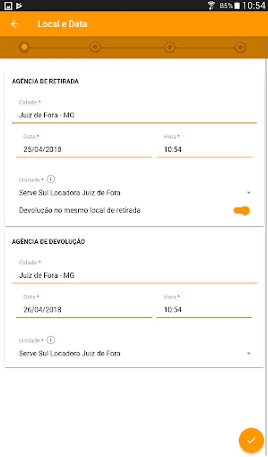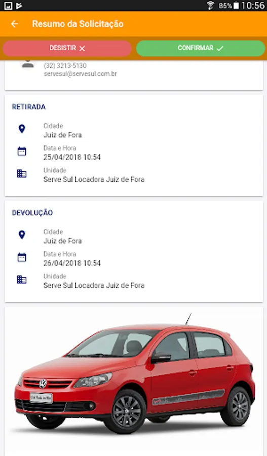 This application makes a reservation request in the Vehicle Lessor Network "Serve South Rent a Car." Following the Rental will process your request by allocating a vehicle to meet the reserve. After the vehicle is booked, the status changes to "Confirmed" indicating that all is right with the booking.