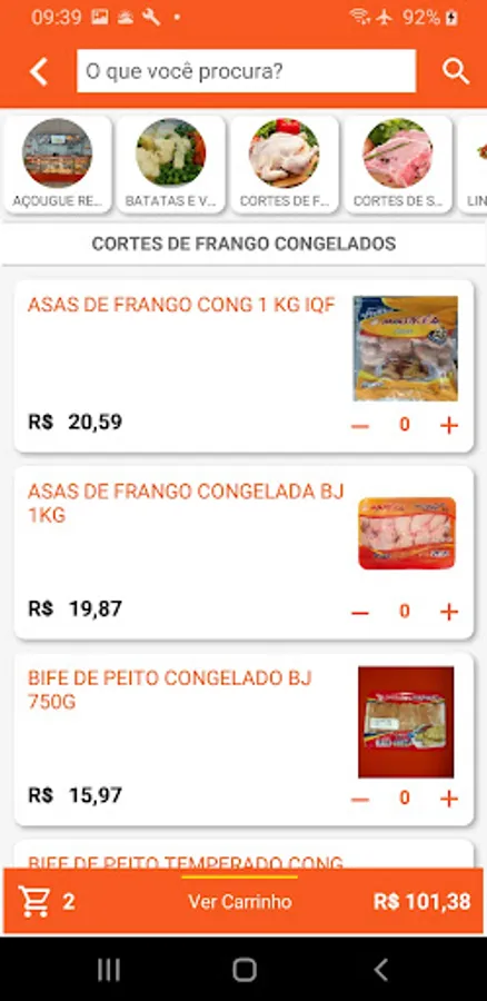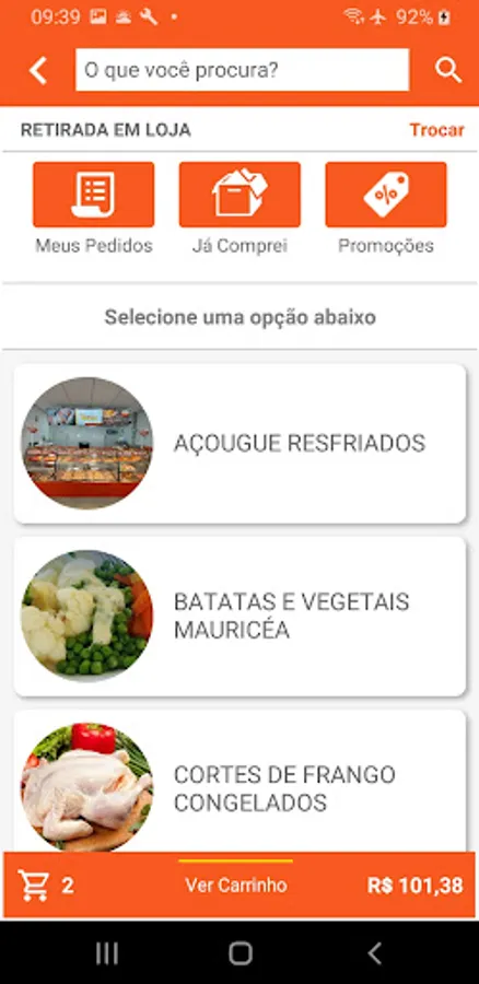 With the Lojão do Frango app, you do your shopping and receive it at home or pick it up at the store.