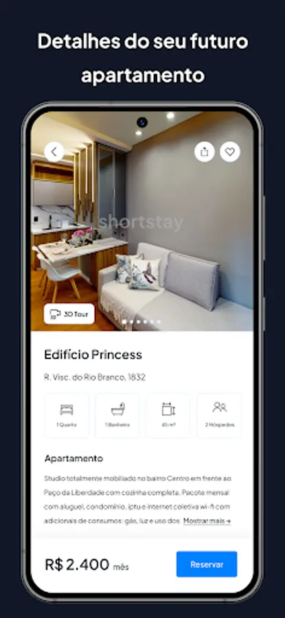 Shortstay specializes in renting furnished apartments and flats in Curitiba with flexible contracts for 30 days or more. Its main competitive advantage lies in the agility of the rent, in the 100% online reservation process and in the application with excellent presentation of the properties (high quality photos, video and 3D virtual tour), descriptions and detailed rates for each apartment presented, everything transparent and without surprises.