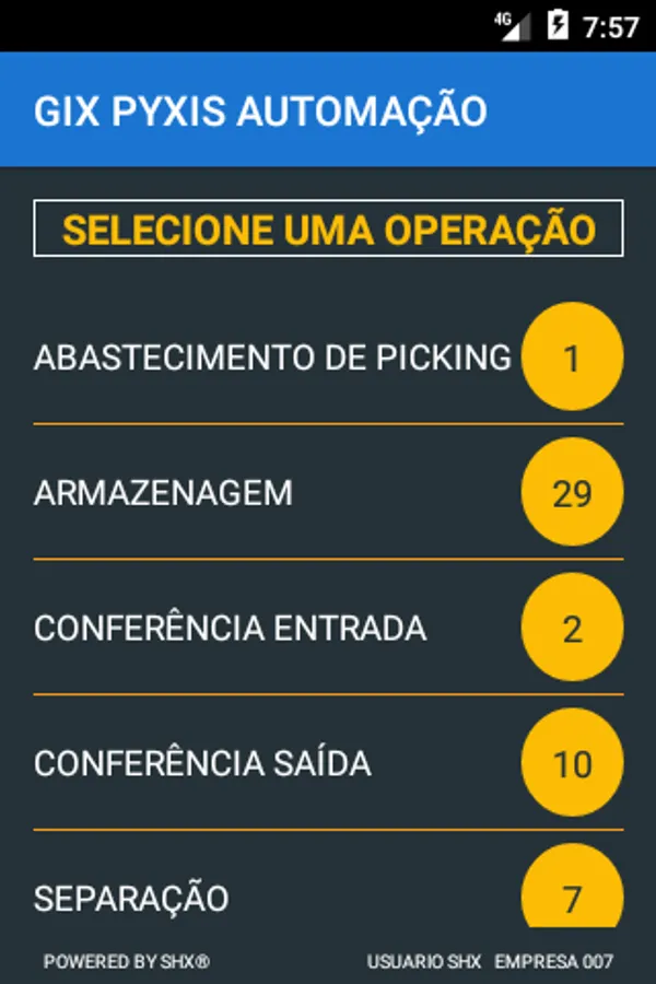 The use of the application is linked to the licensing of the GIX PYXIS system. For more information, contact SHX (www.shx.com.br).