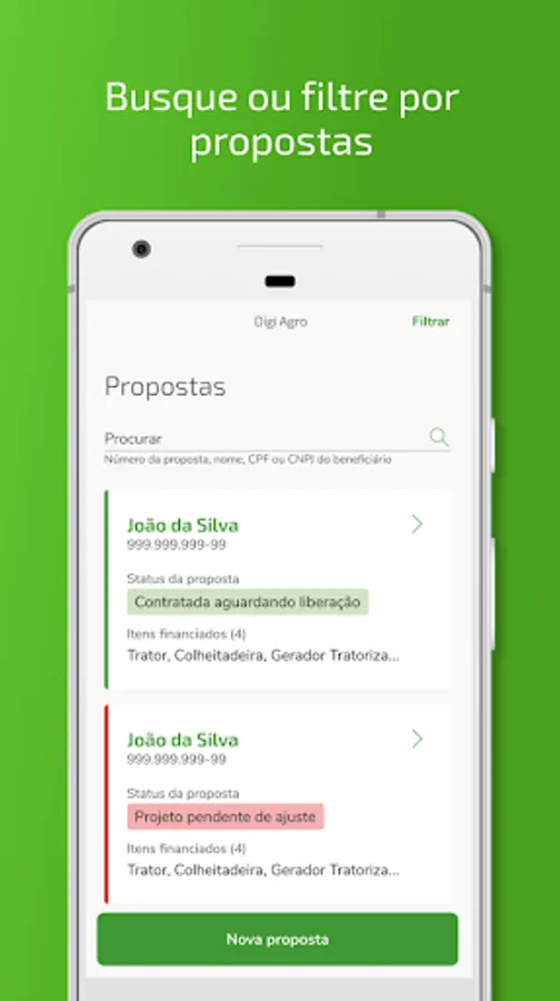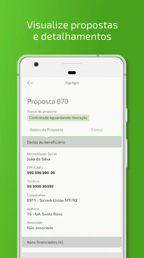 Digi Agro Sicredi manages the entry process (in Sicredi) of funding proposals for Costing and Investment carried out through external business partners and cooperatives.