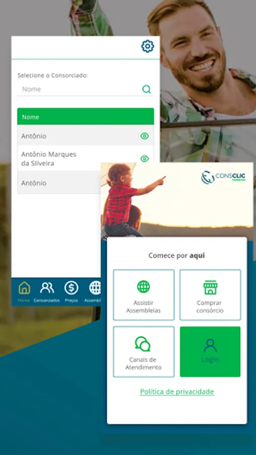 Managing your Consclic Consortium quota in the palm of your hand. Use the app to watch your OnLine Assembly, consult your Consortium Statement, bid, issue Boletos, consult the Assembly Result and much more.