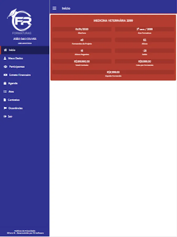 App FR formaturas, an application that came to make life easier for our trainees, in this app the trainee has full access to his / her history with the FR, in addition to being able to follow in real time everything that happens at his graduation.