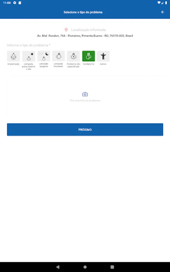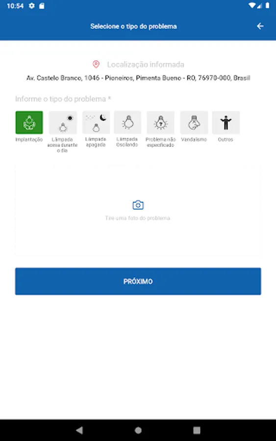 At Pimenta Bueno Iluminada, citizens can report the problem of public lighting in their street, neighborhood or wherever they are.