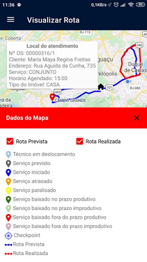 • Identify the routes planned and performed by the technician's displacement through the device's location feature in the background;