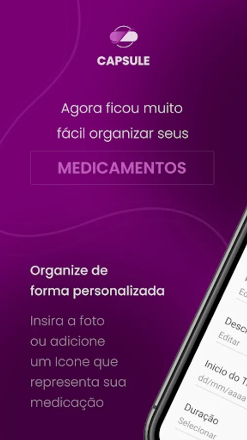 Organize seus medicamentos de maneira personalizada, podendo inserir fotos ou icones que representam o tipo do medicamento, minimizando qualquer chance de inserir o medicamento errado.