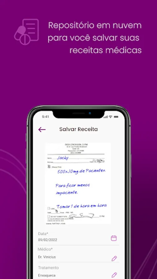 receitas médicas e ter acesso caso precise no