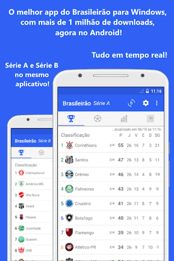 What are you waiting for to start following the 2023 Brasileirão Table, the goals of the round, the series A and series B results and all the information on your favorite team, wherever and whenever you want, right on your cell phone screen?