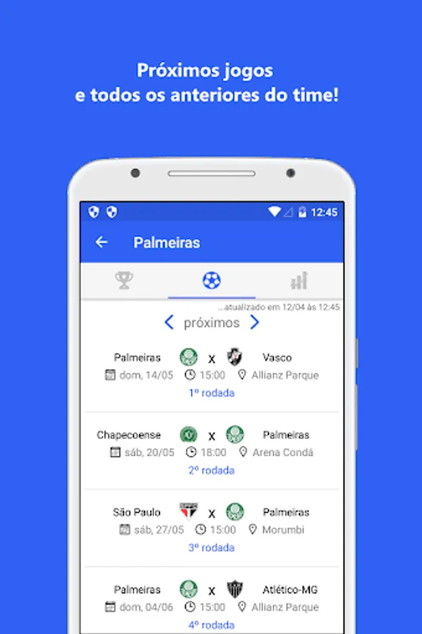 3 - If you want to update the 2023 Brasileirão Table and other data without having to enter and exit the application, just tap the "update" button.