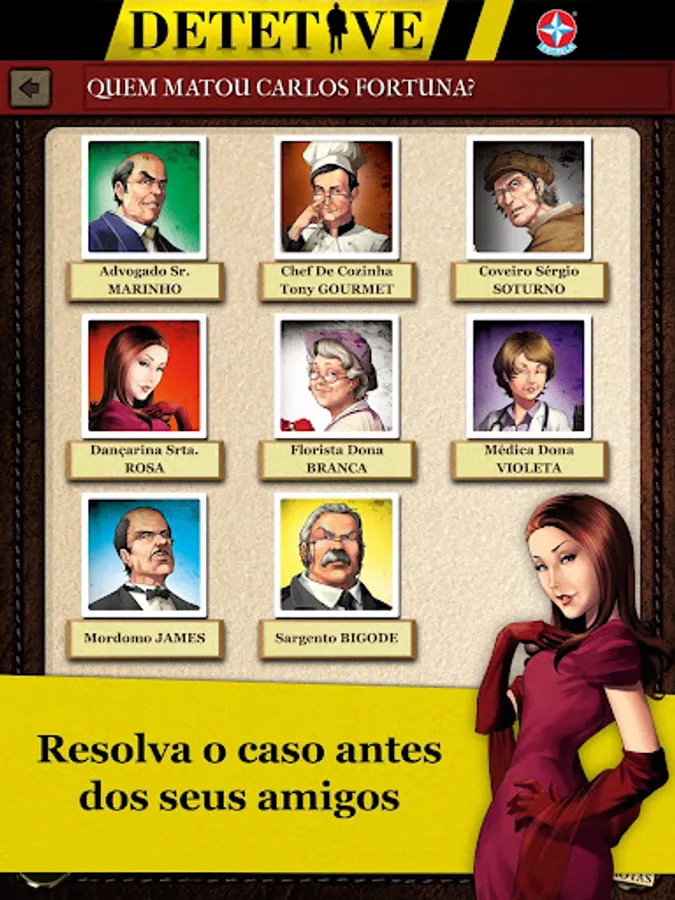»To use this application you need to have the board game 'DETECTIVE'. You do not have yet? Learn where to buy: www.estrela.com.br