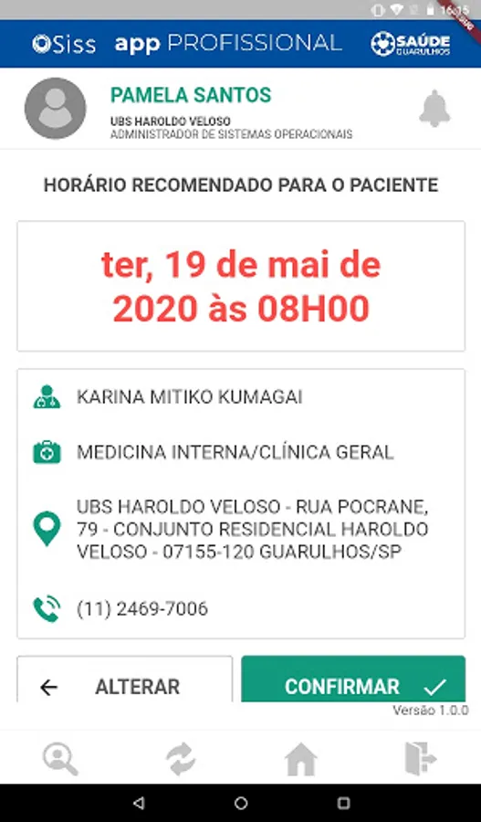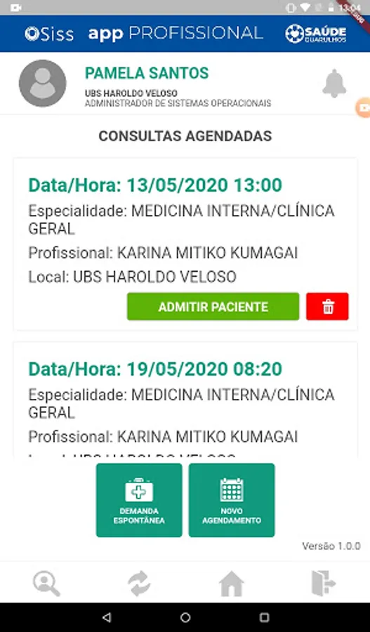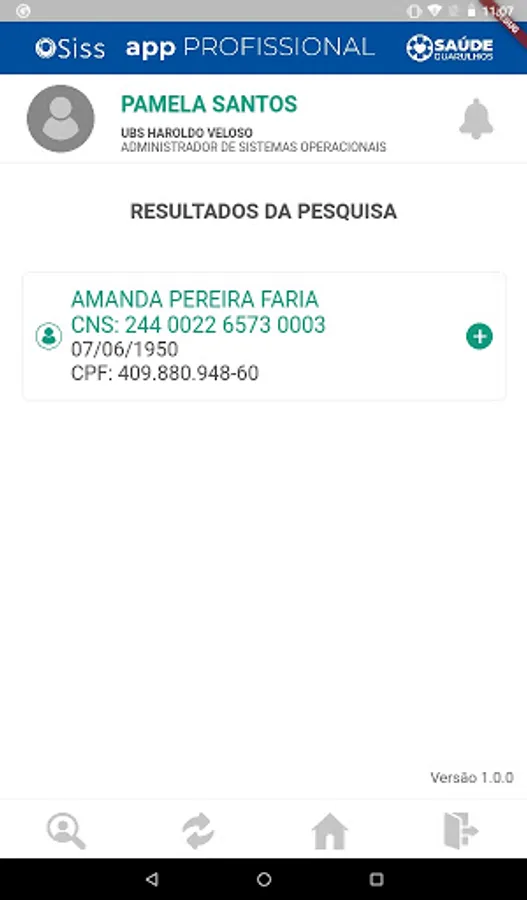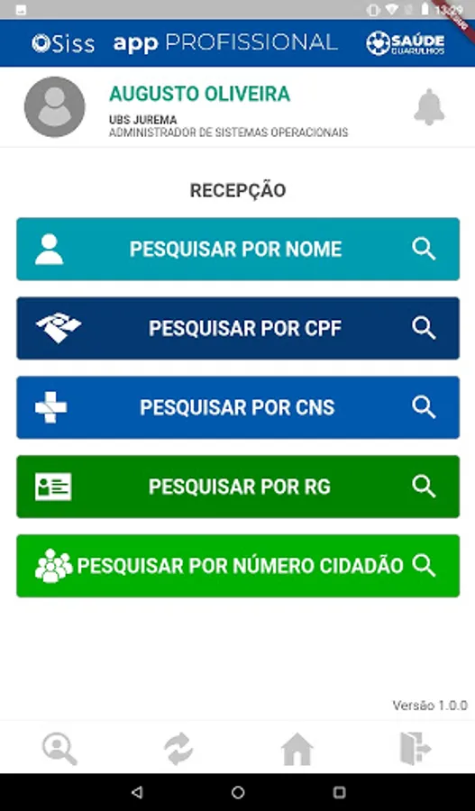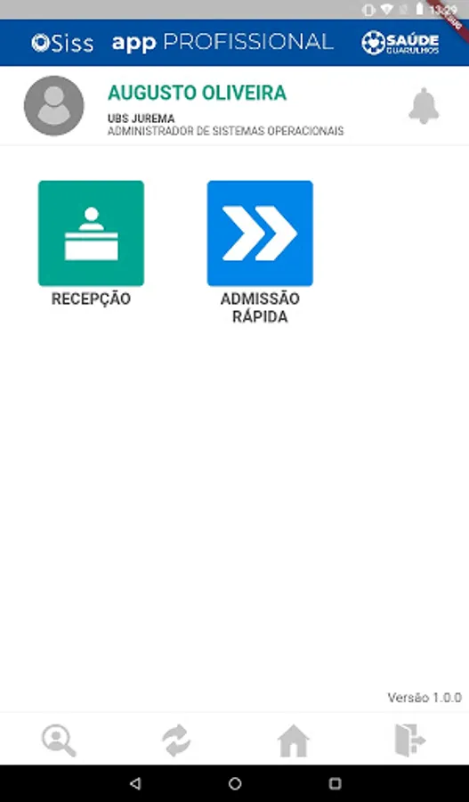 Application integrated with SISSOnline, containing functionalities for the use of professionals in the reception of health units, enabling the identification and reception of health users for care in the establishment