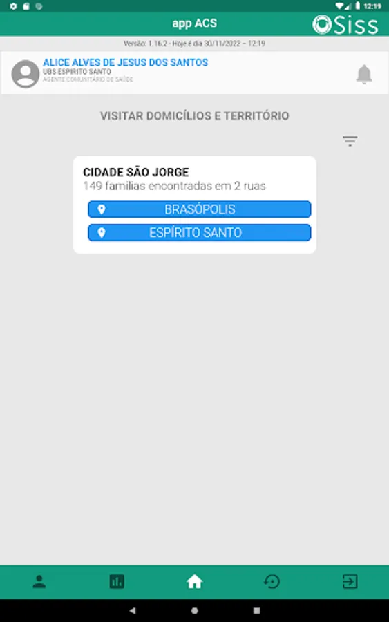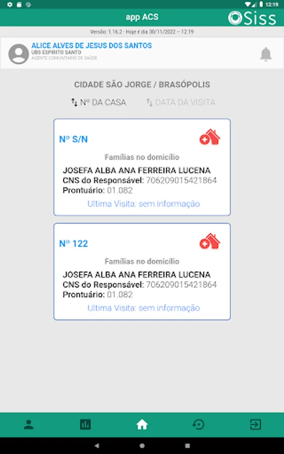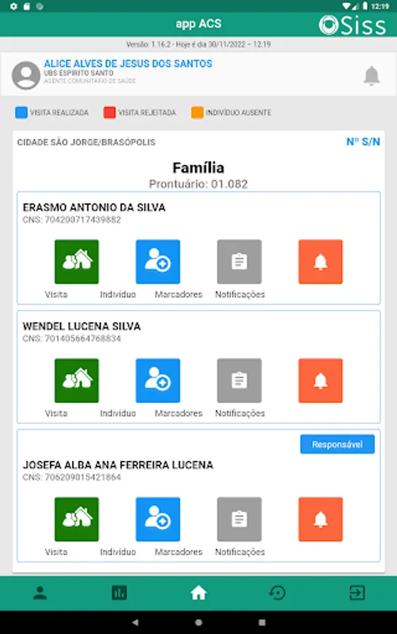 SISS ACS the application integrated with SissOnline - Intelligent System at the Service of Health - which provides the community health agent with the following facilities: