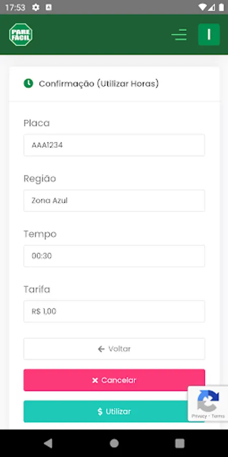 Application to use the blue zone credits in the cities served by Pare Fácil Zona Azul.