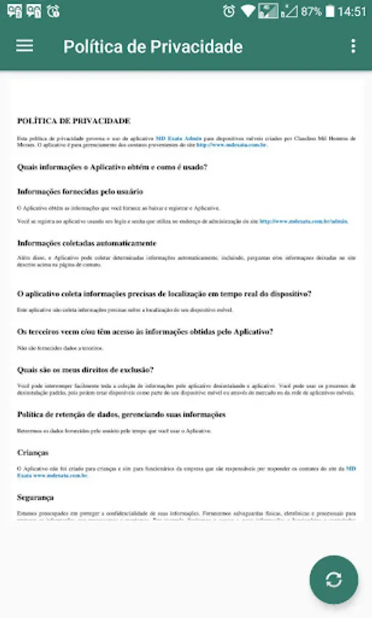 Application that helps in the answers of contacts made on the site www.mdexata.com.br.