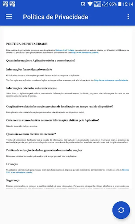 Application to manage the site www.sistemasac.com.br