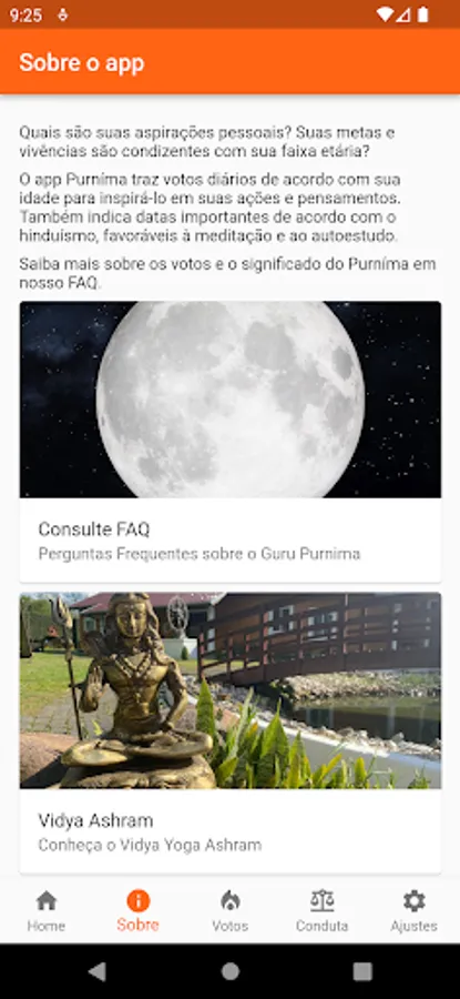 Este aplicativo mostra as datas auspiciosas para o hinduísmo, favoráveis para meditação e autoestudo, incluindo as datas de lua cheia de Gurupurnima.