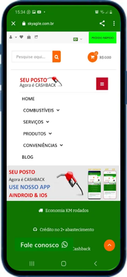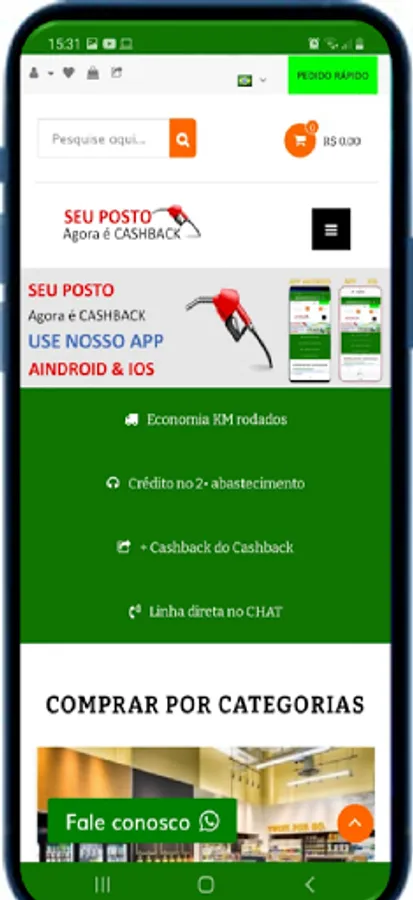This application is a showcase aimed at companies in the segment of fuels that seek solutions in the ecommerce of CashBack.
