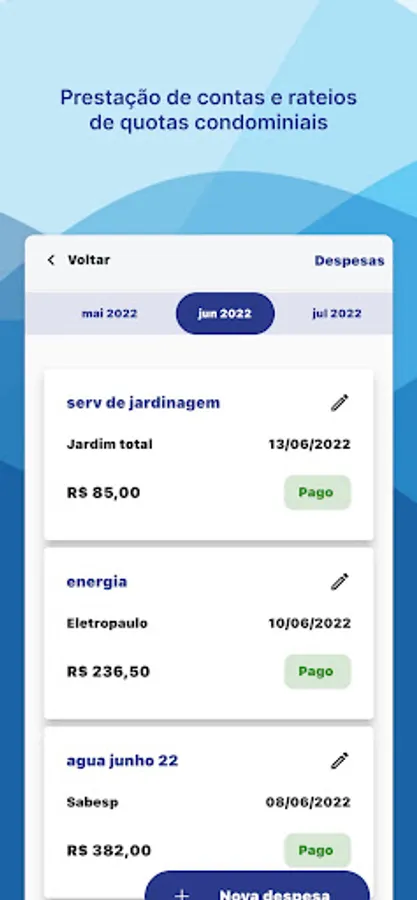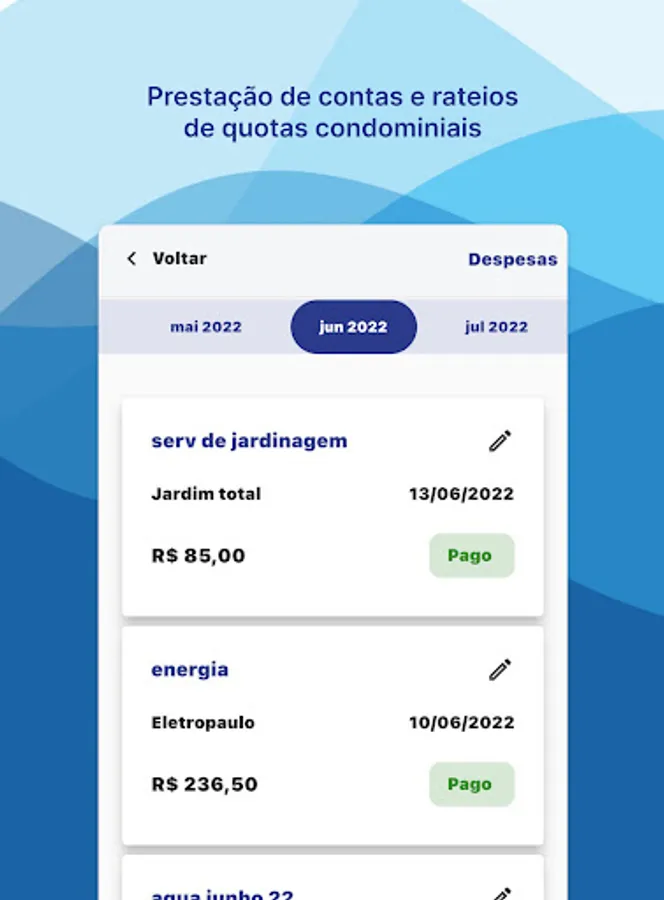 Downloading the App is free. Residents and the liquidator pay nothing for the application. Its use is contracted by the condominium through subscription, based on the number of apartments (housing units). The first month is free and you can also use the trial version to familiarize yourself.