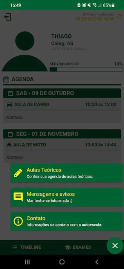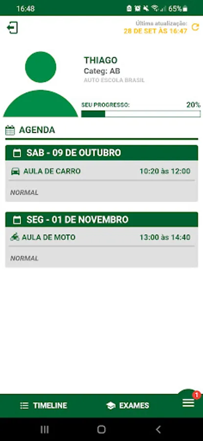 CFC Brasil is an application through which a student registered at the Brasil driving school can view his schedule of classes and exams.