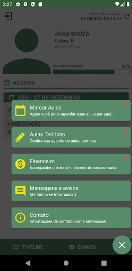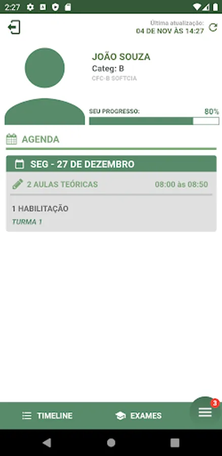 CFCB Sergio is an application through which a student registered at the Sergio driving school can view their schedule of classes and exams.
