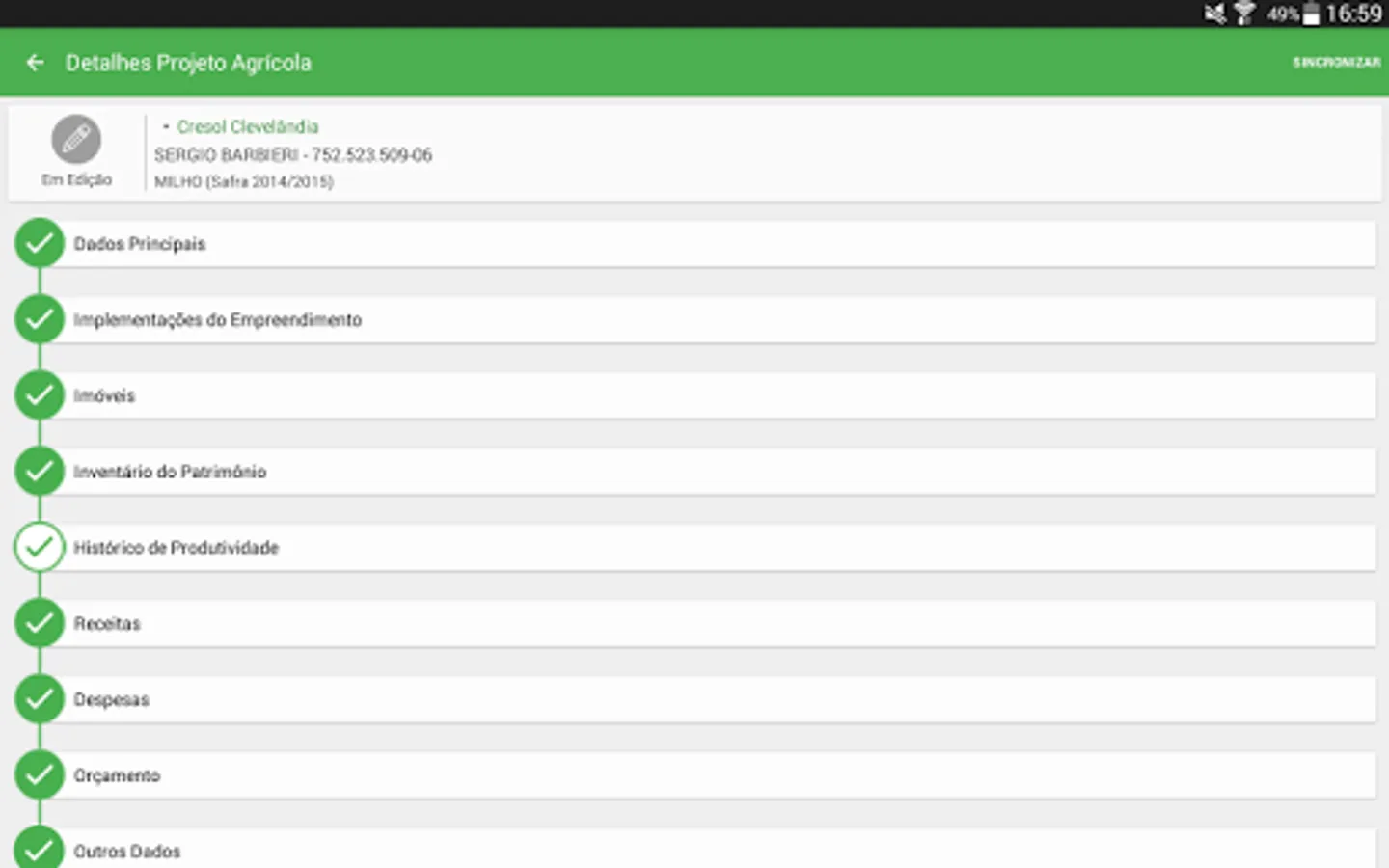 Application focused on the use of Agronomists to carry out the registration of Costing and Investment Technical Projects in the field, fully integrated with Cresol's web-based credit contracting system.
