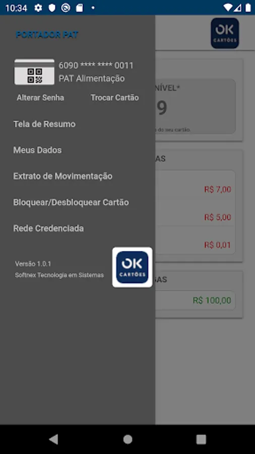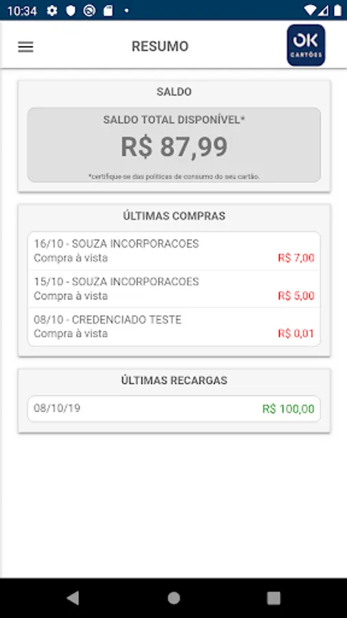 With this application, the OK Card user will be able, according to his card type, to have access to the following functionalities: