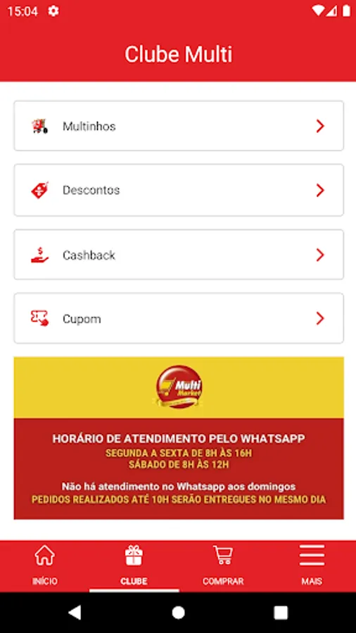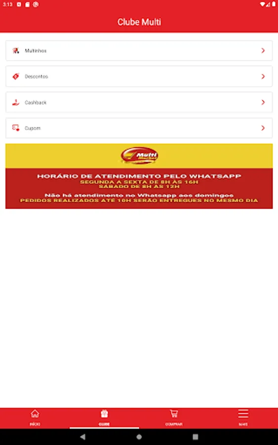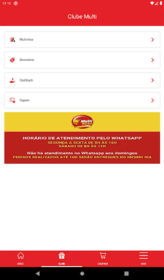 You can place your purchase order and track the status of your orders. When shopping at Braga supermarkets, you can accumulate points that are exchanged for gifts at the Clube Multi App. After exchanging your points for gifts, you can pick up your gift at a store in Braga supermarkets. If the desired gift is not available, you can "redeem" your gift for points and choose a new gift. You can also share your points with your friends.