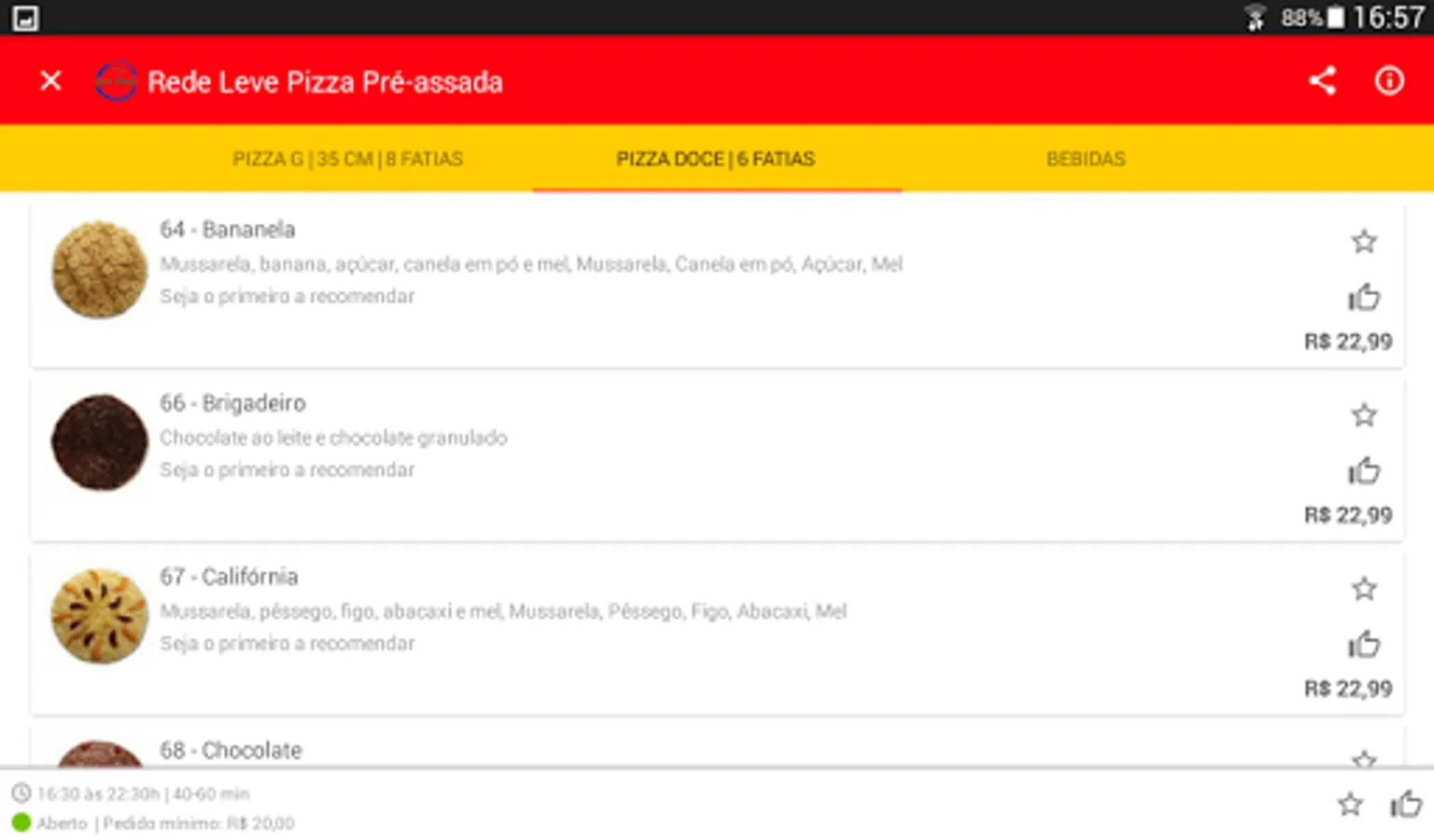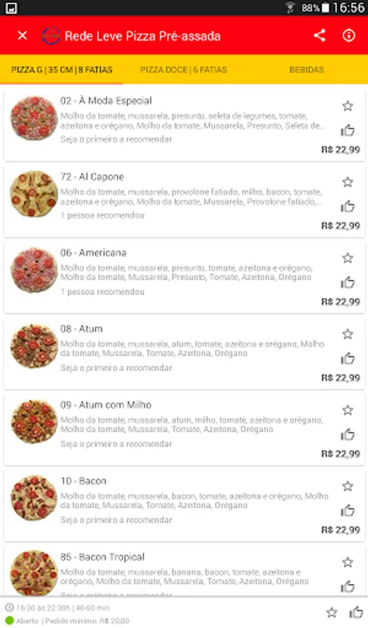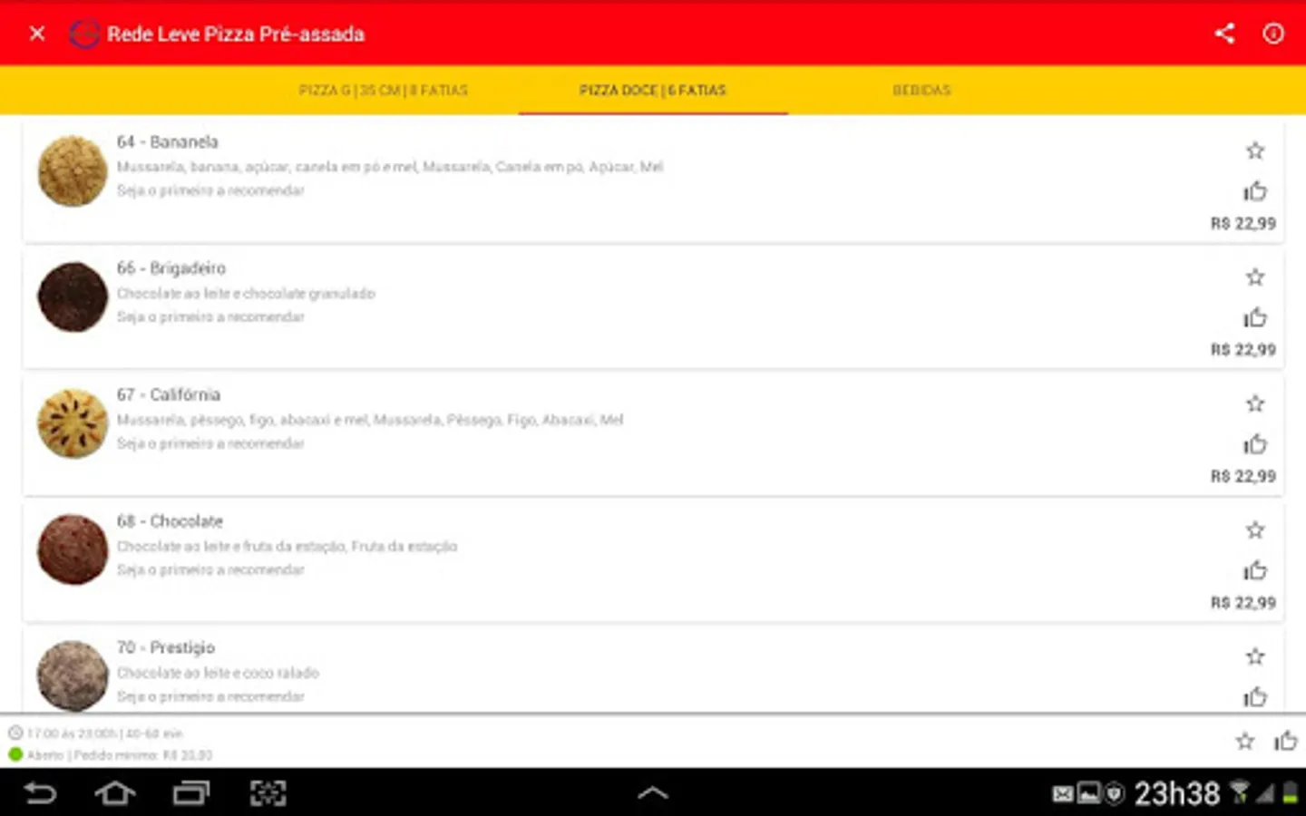 • Once the establishment is chosen, the menu offered by the company will be made available to you, divided by categories.