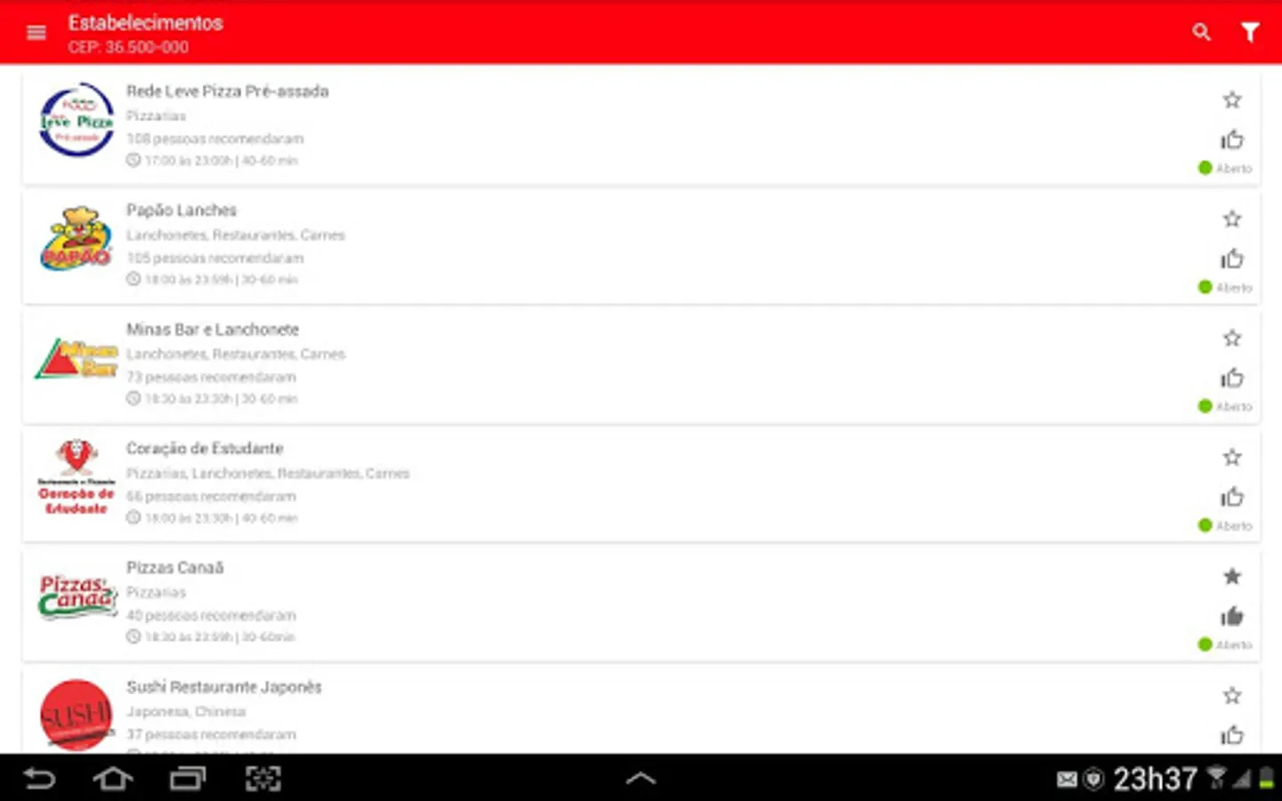 • After installing the app, enter your location zip code and see the companies that deliver to your location: you'll know which stores are open and closed, the minimum and maximum delivery times described in each store. To sign up, use your Facebook, Google account, or valid email address.