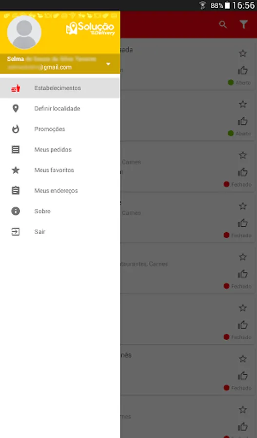 • In the form of delivery Deliver Me: The customer enters the shipping address and selects the payment method. An order number is generated where the restaurant will analyze the order, confirming or canceling and informing through notifications by the application.