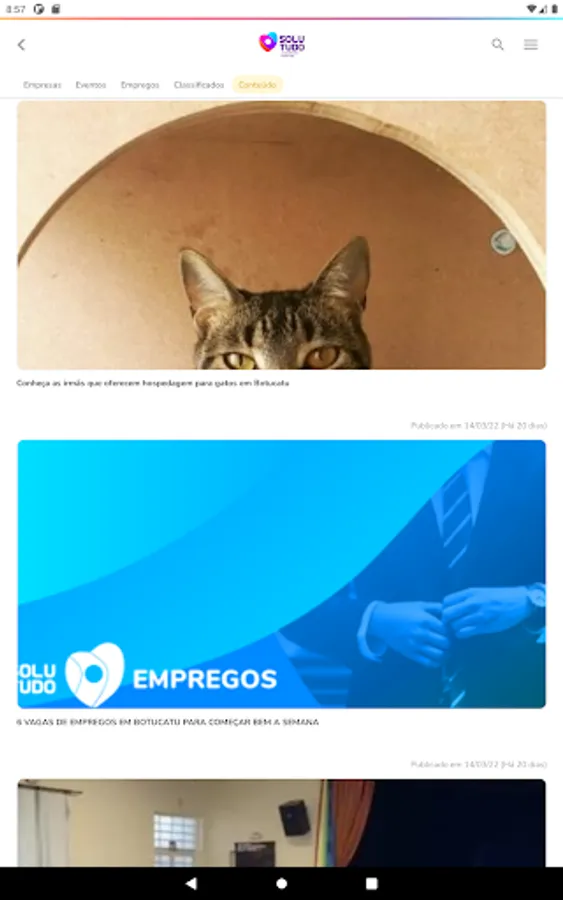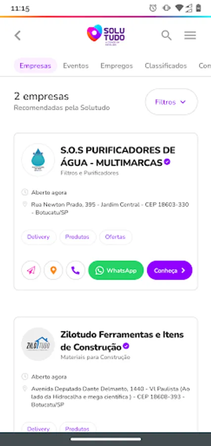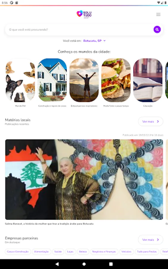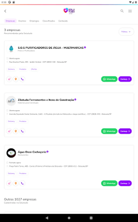 The Solutudo application is the means most convenient and efficient for you to find companies, service providers, jobs, events and other information about their city. Based on a search for keywords, you simply type the information, defines the city and performs fast and intuitive way to query directly in the systems of Solutudo.
