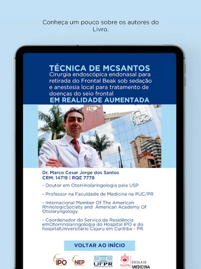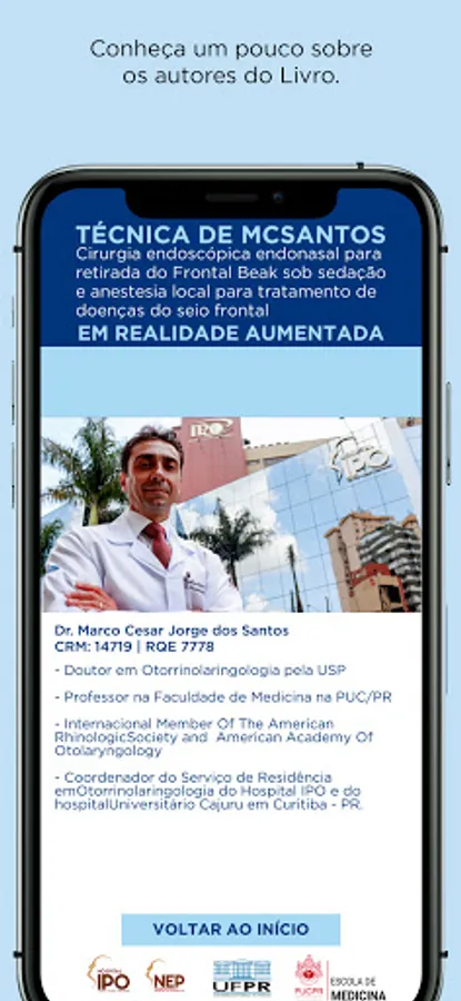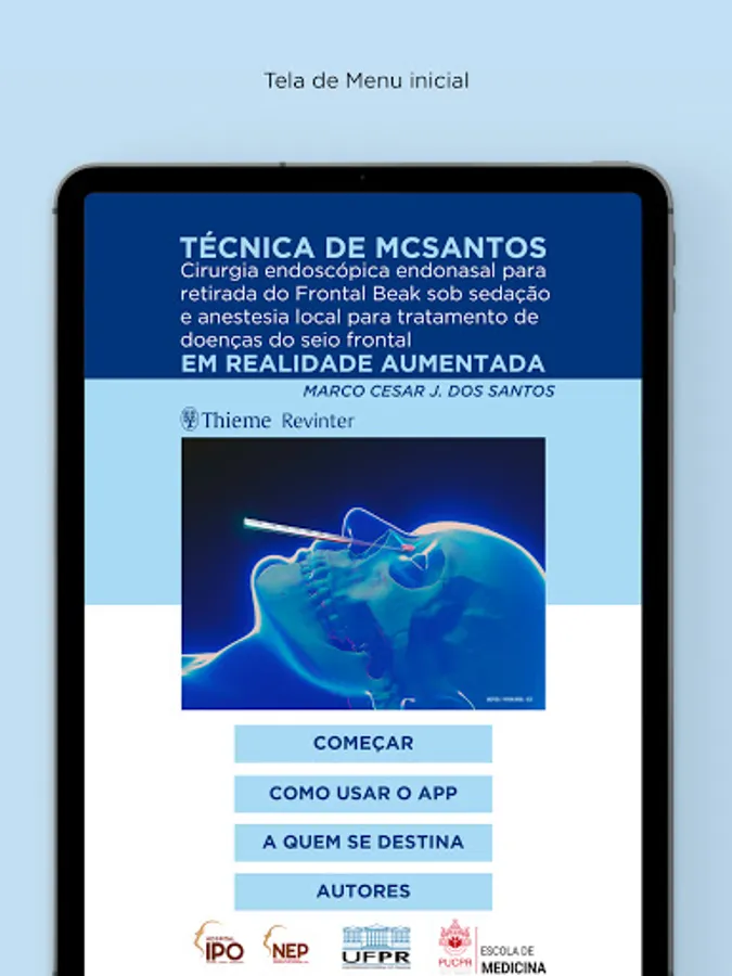 Application made in Augmented Reality for the book IPO Frontal Sinus Surgery in Augmented Reality, written by Dr. Marco Cesar Jorge dos Santos and published by IPO-Instituto Paranaense de Otorrinolaringologia