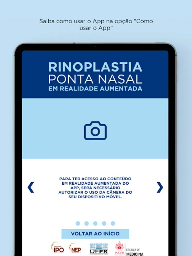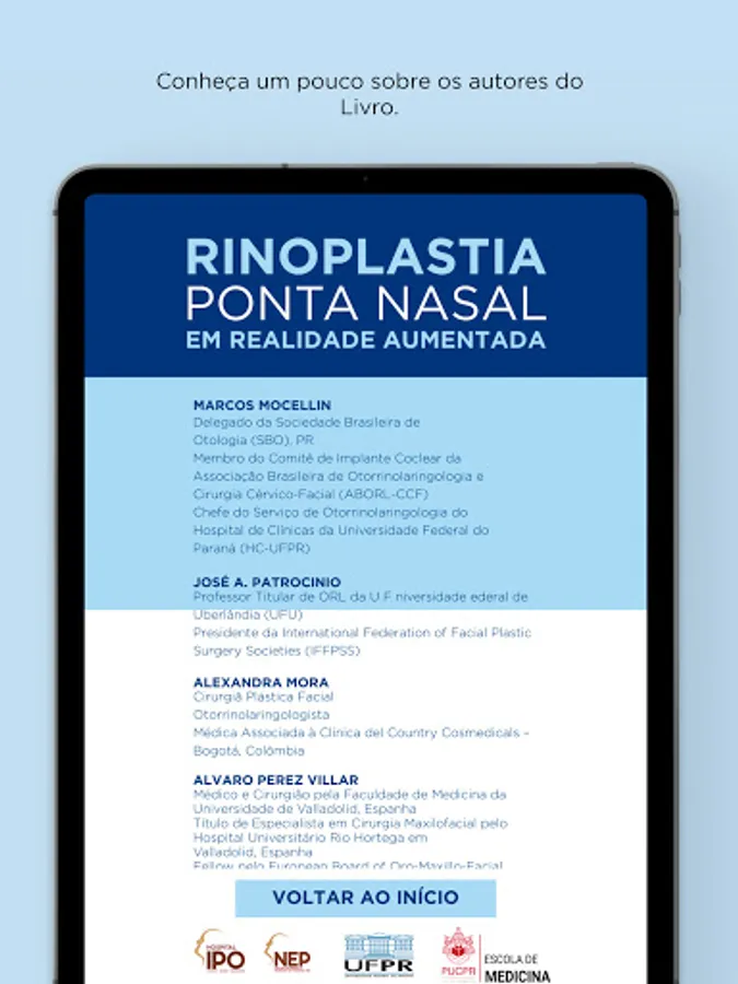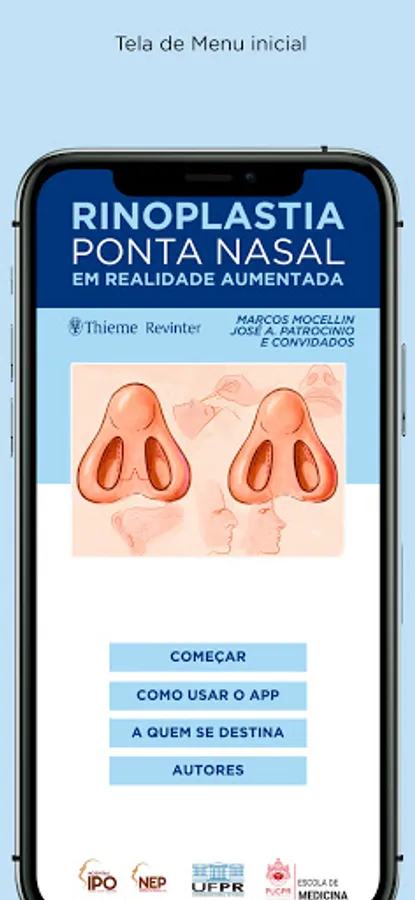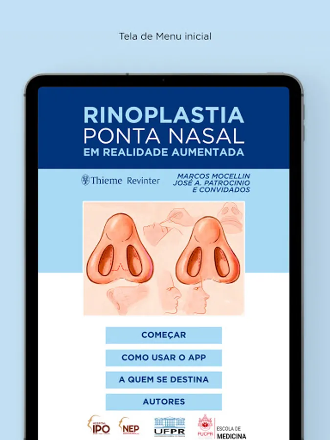 Launch version for the App present in the book IPO Rhinoplasty Ponta Nasal in Augmented Reality, written by Drs. Marcos Mocellin, José A. Patrocinio and guests and published by IPO-Instituto Paranaense de Otorrinolaringologia