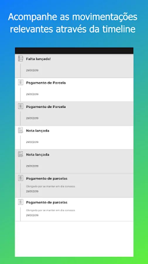 Sponte offers its customers an application to consult notes, frequency, calendar and more.