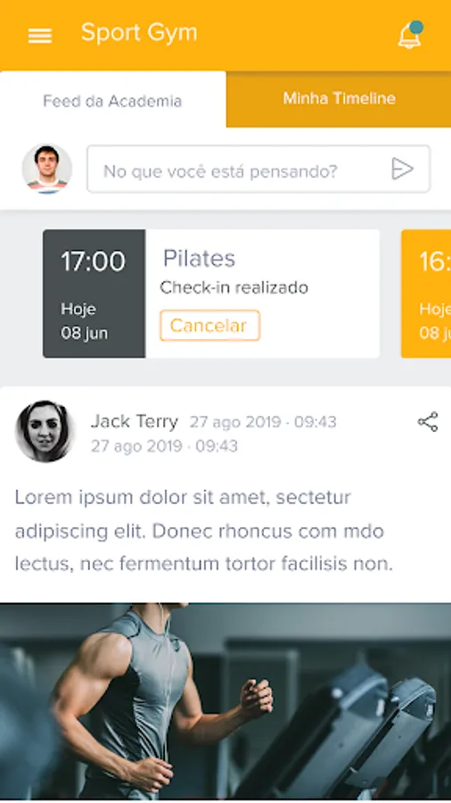 Through the SportGym app, students can interact with their network through the timeline, checking, enjoying and adding news, accessing their exercise sheet with load evolution history, monitoring their physical assessments and checking in to classes. All this in the palm of your hand to make your workout more dynamic and interactive.
