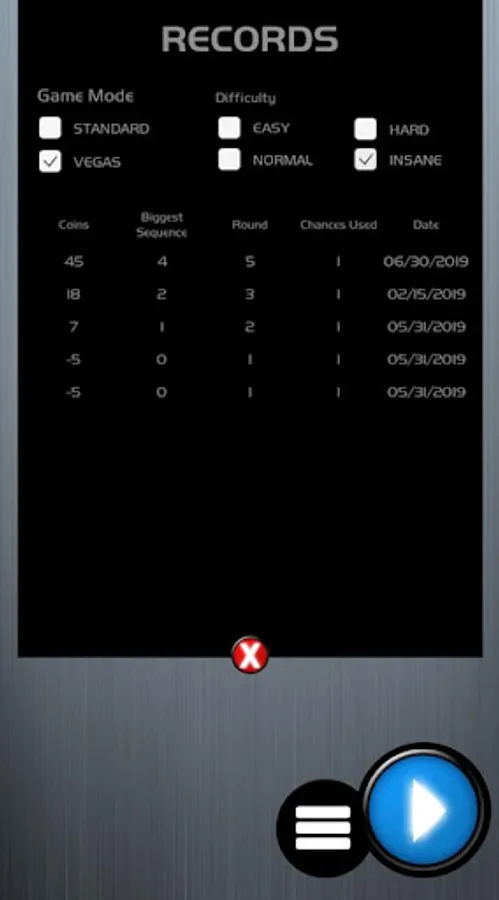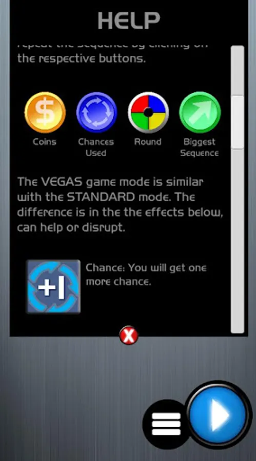 An adaptation of the famous game "Simon Says". Train your brain with this fun and addictive memory game. In addition to the traditional 80's gameplay, an electrifying version called Vegas, with various difficulties during the game, install and check out the Vegas game mode and find out what a real challenge is.
