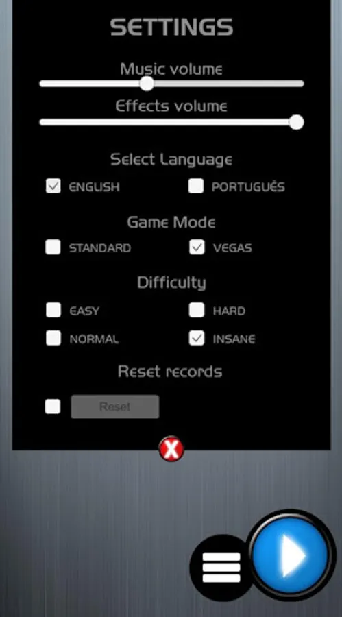 4 Levels of difficulty: Easy, Normal, Hard & Insane.