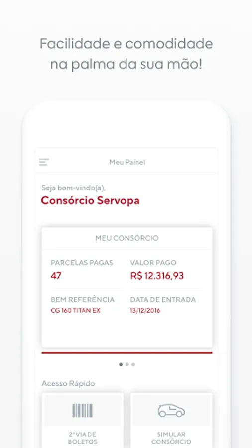 That's right. With the Consortium Servopa application you will have greater convenience to consult your parcels, track the results of the last meetings, ask for the 2nd copy slips, offer or simulate bids, make business contact, do shopping simulation and more!