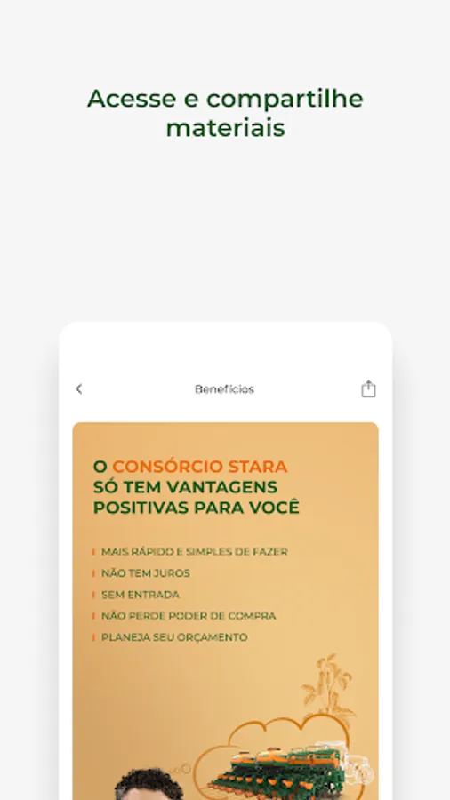 The APP presents in a practical way the operation of the Stara Consortium and enables simulations of the best way to negotiate the acquisition of agricultural machinery.