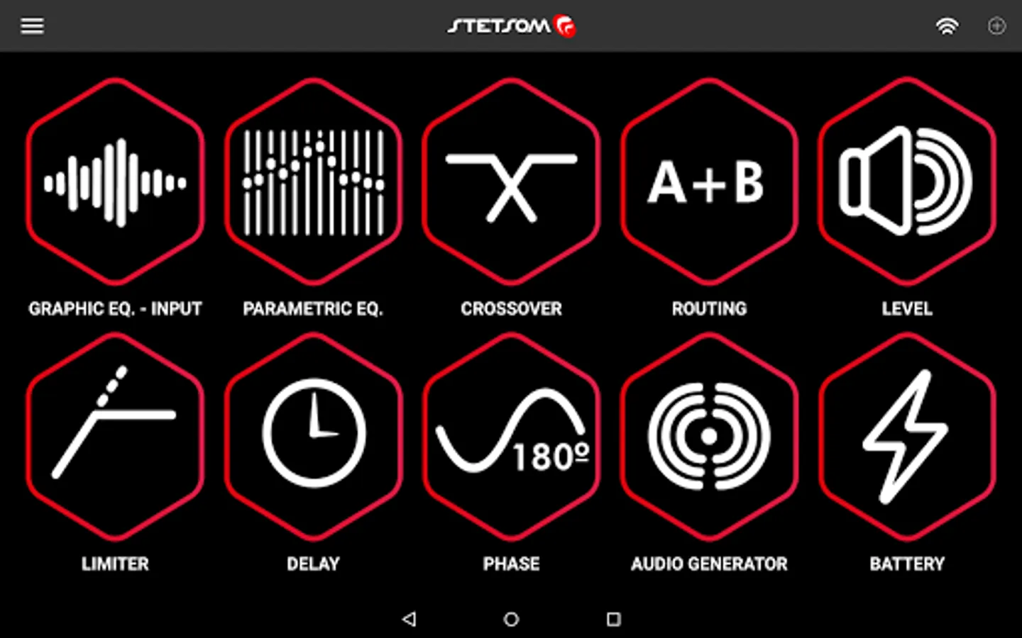 If you still do not have the STX2436 audio processor, you can enable the demonstration mode to test application functionality. To activate this mode you must open the side menu, go to Settings and checking the Activate demo mode option.