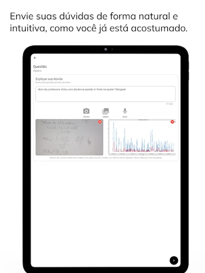 Send your academic questions on specific questions or content through text, videos, photos, audios and PDFs and receive answers from professors across the country.