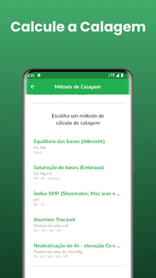 Regarding liming, the app offers a variety of advanced methods to meet the specific needs of your crop. Let's look at some of these available methods: